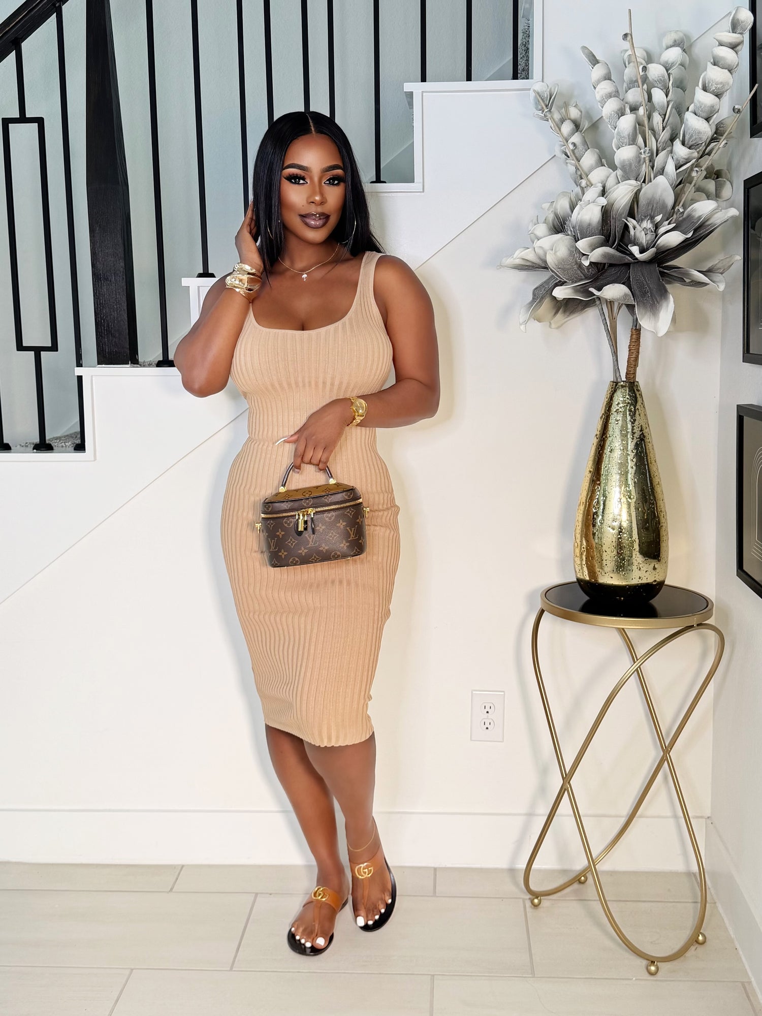 HUG ME SLEEVELESS DRESS (BEIGE)