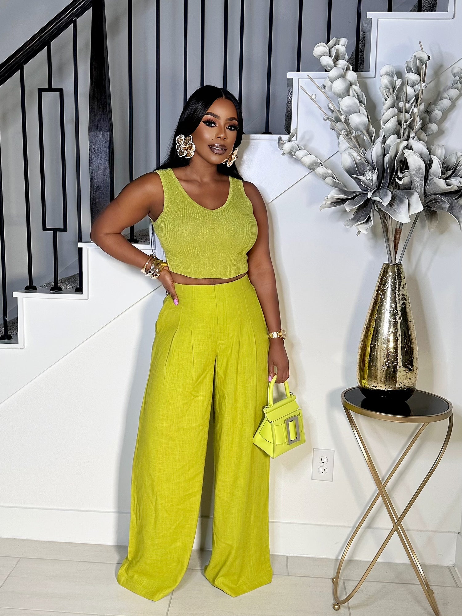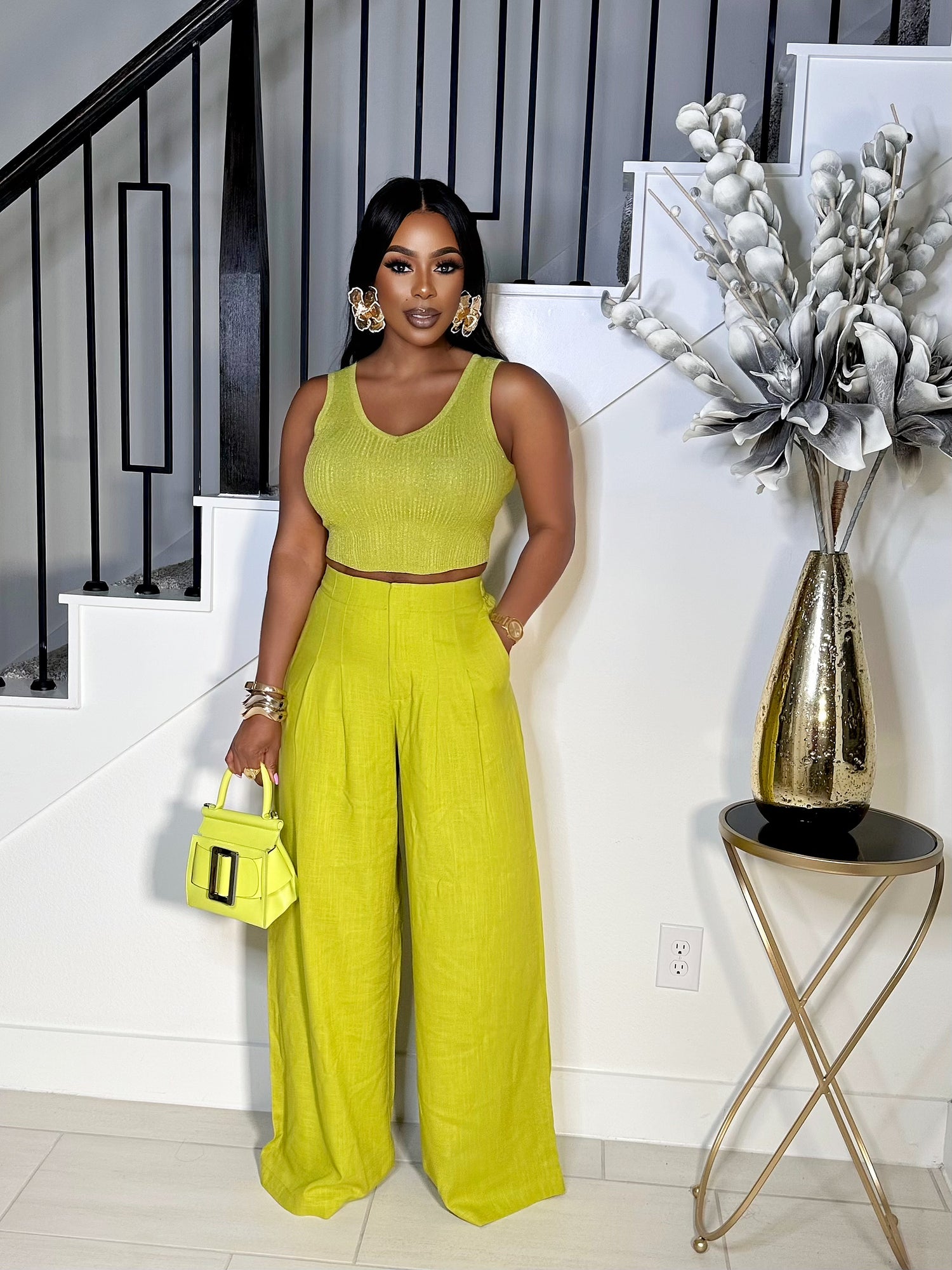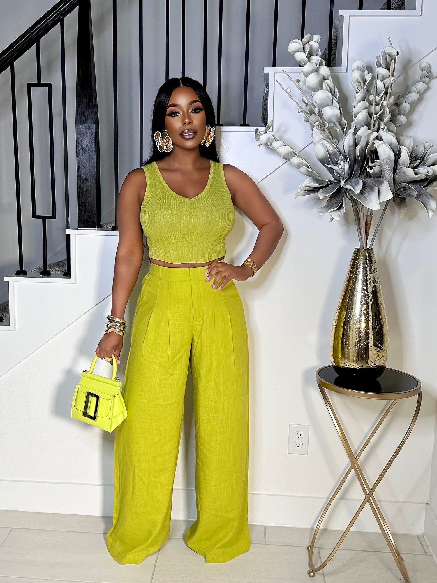 GOOD FEELS LINEN PANTS SET (CITRON)