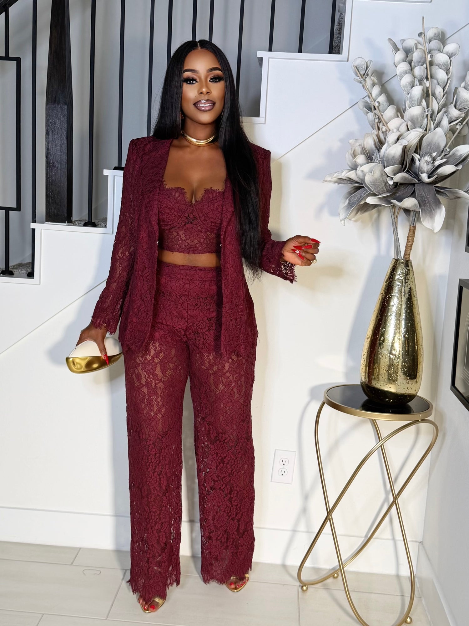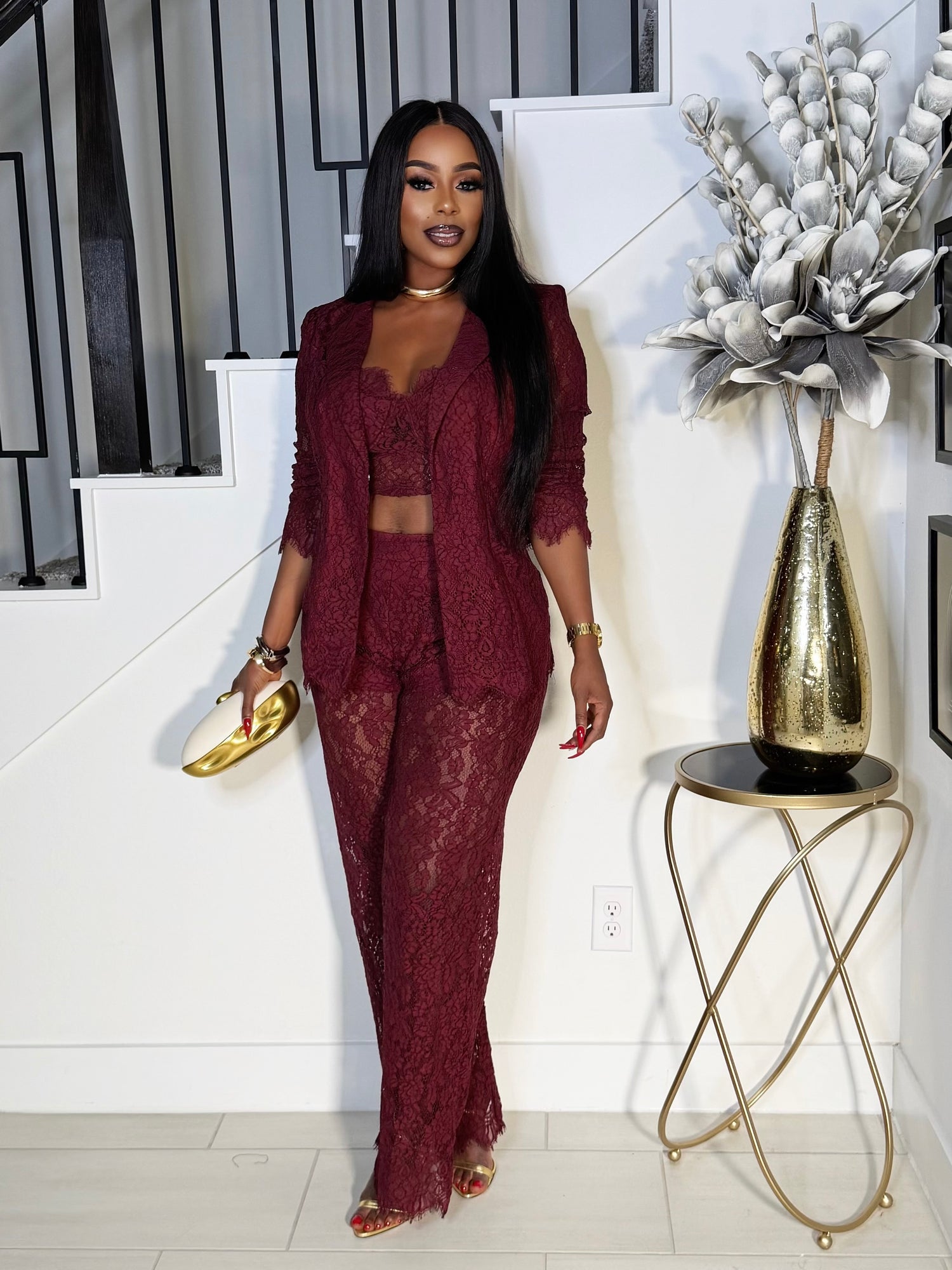 THE FALL 3PIECE BLAZER SET (BURGUNDY)